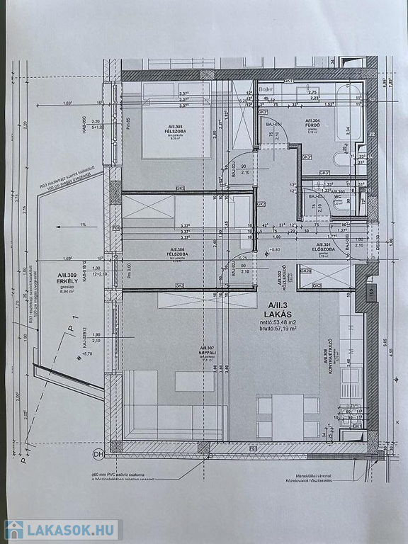 A lakáshoz tartozik egy saját gépkocsibeálló és egy kb. 2 nm-es tároló is, ezeknek az ára plusz 9millió forint (megvásárlása kötelező!).