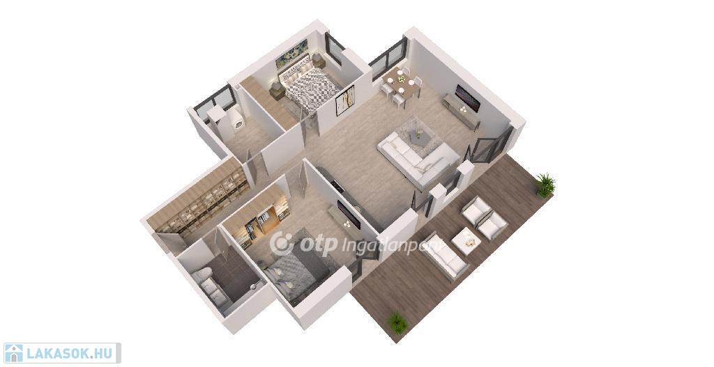 Siófok egyik legújabb és legmodernebb lakóparkjában, a Karma Gardenben, eladó egy 3 szobás, 96,03 nm-es földszinti lakás, amely ideális választás mind állandó otthonnak, mind nyaralónak. Főbb jellemzők: Alapterület: 96,03 nm Helyiségek: nappali + 2 hálószoba + konyha, étkező + háztartási helyiség. Tágas terasszal, ami 24,39 nm és saját kertrésszel(150,44 nm), amely tökéletes pihenésre vagy kertészkedésre.