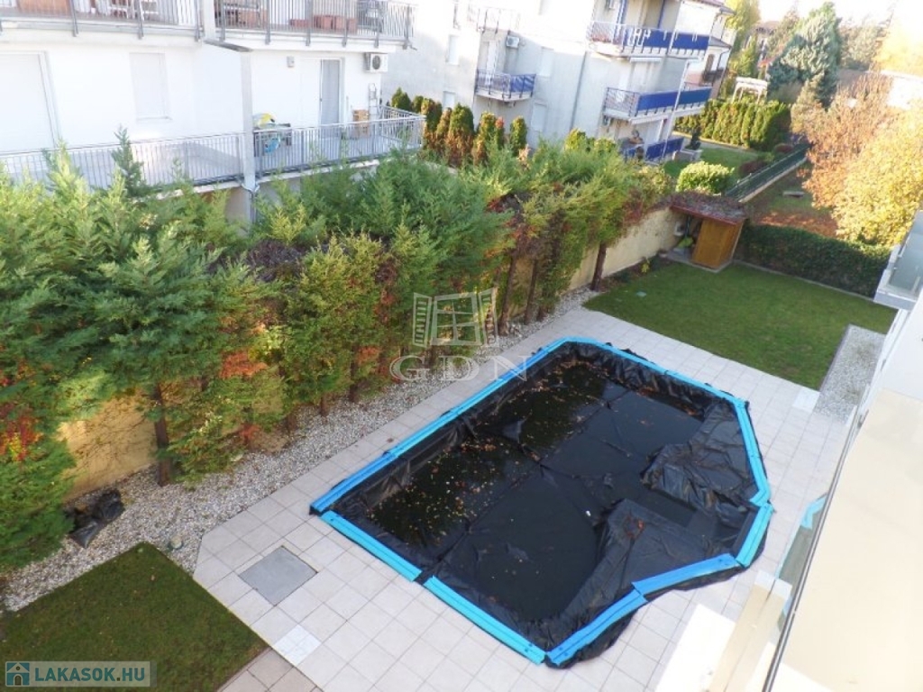A 6 lakásos társas ház rendezett, közös használatú udvarán található medence, és napozó terasz. A lakásokhoz 2 saját autóbeálló tartozik, melyek megvásárlása kötelező, ára 2x4.000.000,- Ft.