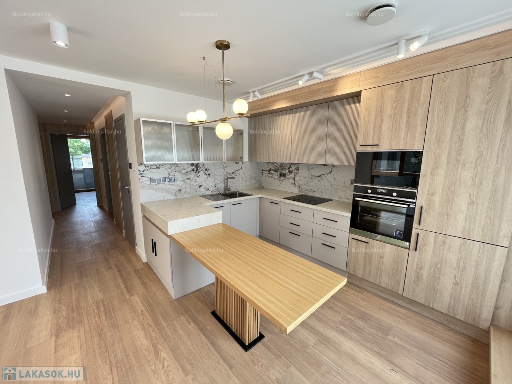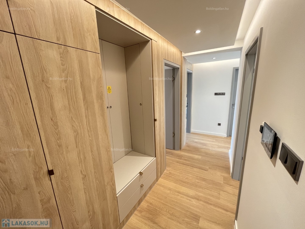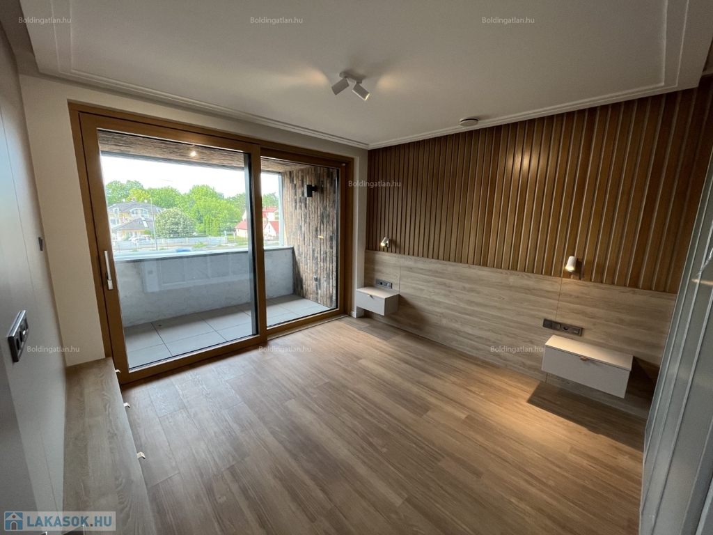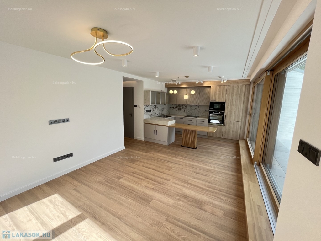 Siófokon a Fő térnél, a Kálmán Imre sétányon, új építésű, korszerű társasház 2. emeletén található - a Fő térre néző exkluzív méretű 60,12 m2-es terasszal + 28,96 m2-es belső terasszal - modern 85,22 m2-es lakás eladó. A minőségi anyagokból, igényes kivitelben készülő ingatlanban egy tágas 26,01 m2-es konyha-étkező-nappali, előtér, közlekedő, 3 szoba, fürdőszoba, wc helyiségek kerülnek kialakításra a tervek szerint. Az épület fűtése korszerű, DAIKIN levegő/víz hőszivattyúval kerül kivitelezésre, és légkondicionáló is felszerelésre kerül. A lakás könnyen megközelíthető és parkolási lehetőség is megoldott a közelben. Az ingatlan kíváló lehetőség akár befektetésnek is a lokációja és nívója végett.