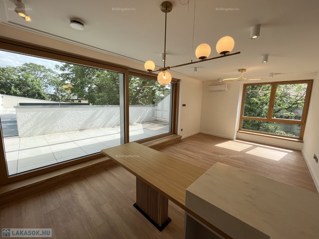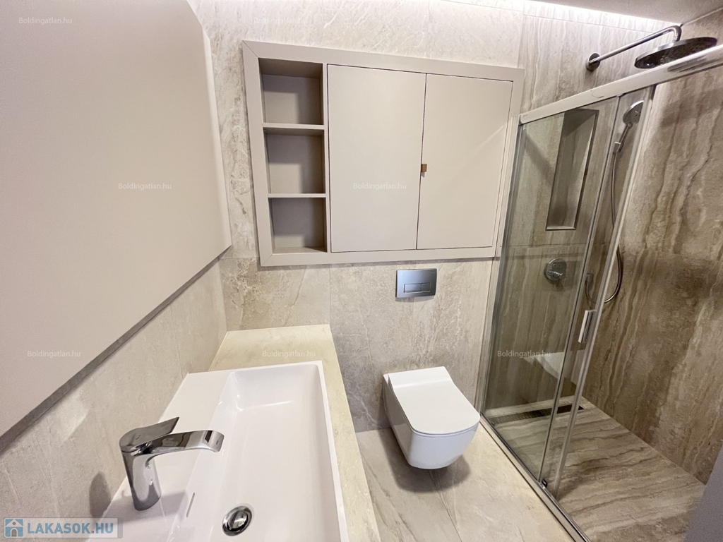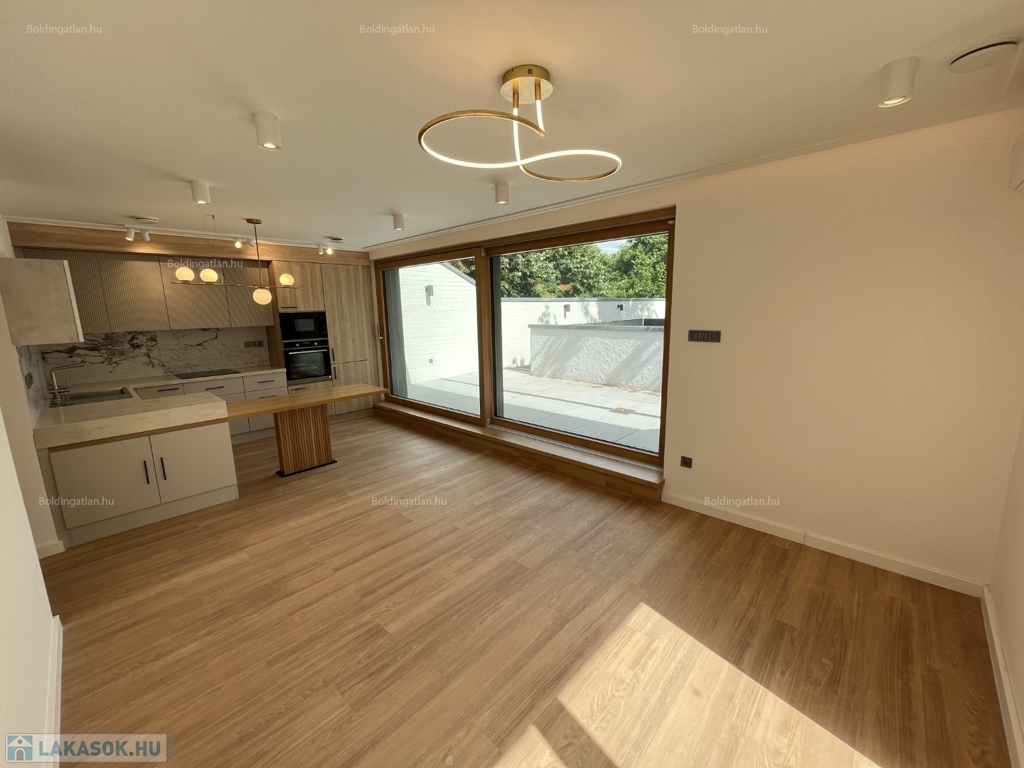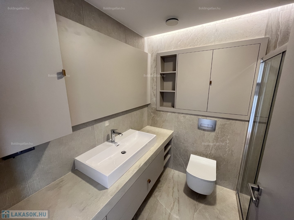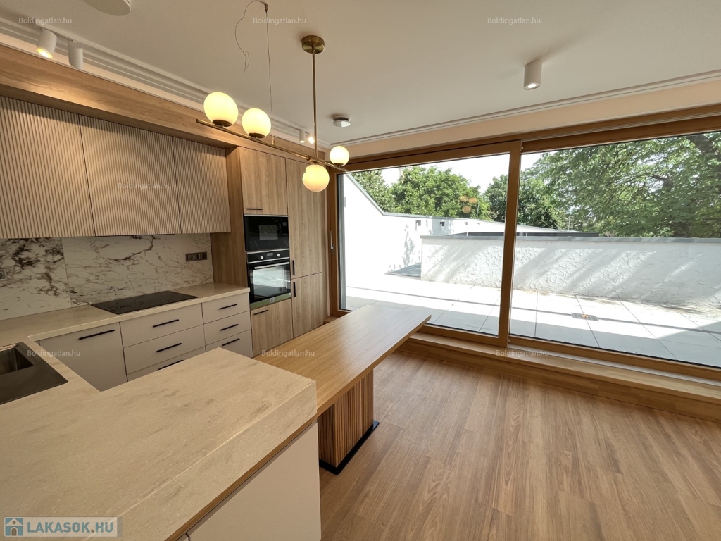 Siófokon a Fő térnél, a Kálmán Imre sétányon, új építésű, korszerű társasház 2. emeletén található - a Fő térre néző exkluzív méretű 60,12 m2-es terasszal + 28,96 m2-es belső terasszal - modern 85,22 m2-es lakás eladó. A minőségi anyagokból, igényes kivitelben készülő ingatlanban egy tágas 26,01 m2-es konyha-étkező-nappali, előtér, közlekedő, 3 szoba, fürdőszoba, wc helyiségek kerülnek kialakításra a tervek szerint. Az épület fűtése korszerű, DAIKIN levegő/víz hőszivattyúval kerül kivitelezésre, és légkondicionáló is felszerelésre kerül. A lakás könnyen megközelíthető és parkolási lehetőség is megoldott a közelben. Az ingatlan kíváló lehetőség akár befektetésnek is a lokációja és nívója végett.