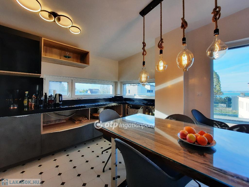 Balaton déli part, Siófok, 91 m2 panorámás penthouse lakás 68 m2 tetőterasszal eladó. Az igényes kialakítású ingatlan Széplak városrészben helyezkedik el egy vízparti, 6 épületből álló lakóparkban. A liftes, földszint + 2 emeletes épületben 5 lakás került kialakításra, a legfelső szintet teljes egészében ez az egyetlen lakás foglalja el. A lakásban egyedi belsőépítészeti megoldások készültek, kiemelten: magas minőségű beépített konyhabútorral, gépekkel, egyedi színvonalas felületképzésekkel és belső ajtókkal kivitelezve. A fűtés - hűtés, meleg víz előállítás a lakáshoz egyedi hőszivattyúról megoldott, mennyezet hűtéssel-fűtéssel, kiegészítő klímaegységgel. A 2022-ben átadott lakópark felszín alatti részén közös kerékpártároló, teremgarázs, és külön tárolóhelyiségek épültek. A szépen gondozott, parkosított kertben játszótér és medence szolgálja a lakók kikapcsolódását. A társasháznak 3 irányban van közút csatlakozása, ebből az egyik közvetlenül határos a szabad stranddal. A lakáshoz pluszban vásárolható 2 db teremgarázs-hely és 2 db 3 m2-es tároló. Részletekért, megtekintésért keressen telefonon!