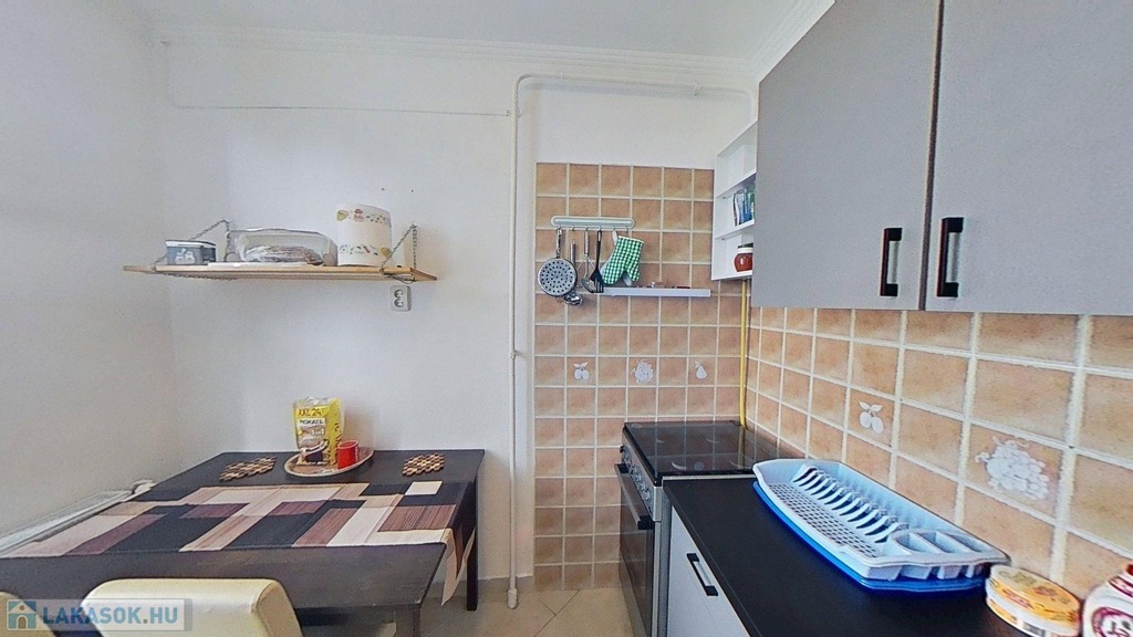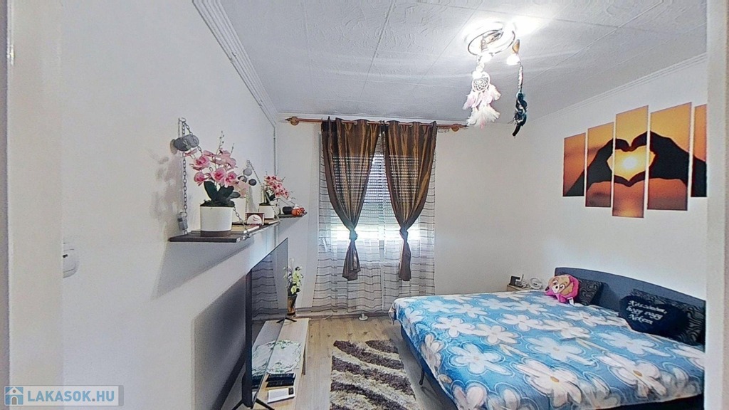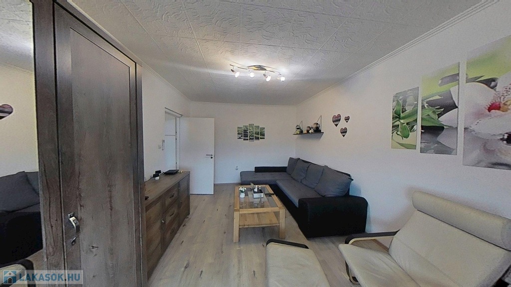 A szépen karbantartott, barátságos hangulatú OTTHON Ny-i tájolású, az elmúlt 7 évben számos felújításon esett át: új bejárati ajtót kapott, 3 rétegű műanyag nyílászárókat minden helyiségben, melyek redőnnyel ellátottak, új kád és konyhabútor került beépítésre, valamint a nappaliban egy 3,5 kW-os inverteres klíma fokozza a komfortérzetet. A fürdő és az illemhelyiség egymástól elszeparált térben helyezkedik el. A lakás alaprajzáról, a helyiségek méretéről, a hirdetéshez mellékelt virtuális túra bemutató keretein belül tájékozódhat.