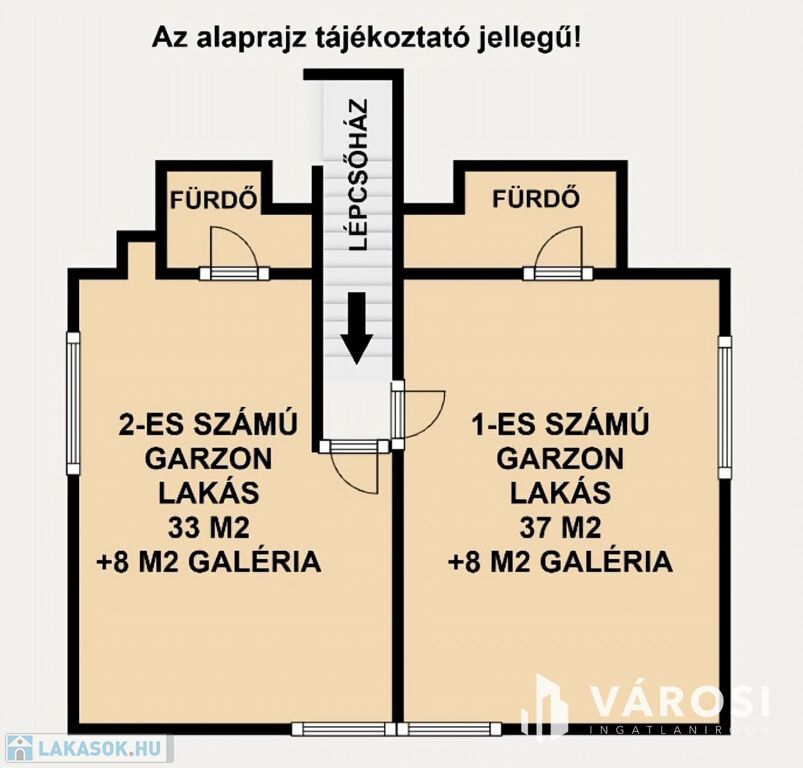 Figyelem! Jelen hirdetés az alaprajzon szereplő 2-es számú garzon lakásra vonatkozik. Eladó az alaprajzon szereplő 1-es számú garzon lakás is 59,9 millió forintos áron.