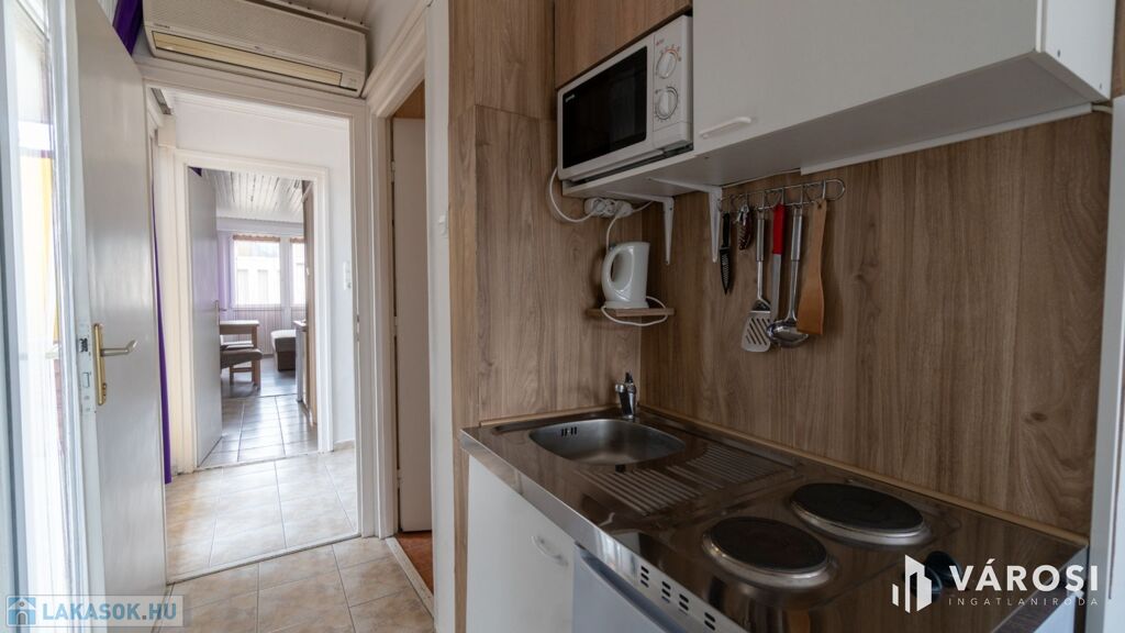 Eladó Siófok Aranyparti részén épült társas üdülő első emeletén lévő balatoni panorámával rendelkező gyönyörű nyaraló. A lakás mindössze 150 méterre található a híres siófoki Aranyparttól. A partszakasz ezen része ingyenes, így korlátlanul élvezheti a Balaton nyújtotta lehetőségeket. Busz- és vasúti megálló, boltok, éttermek pár perc sétára találhatóak. Az ingatlan 2021-ben nagy felújításon esett át, melynek keretében új laminált parketta lett lerakva, valamint a teljes berendezés A-tól Z-ig kicserélésre került.