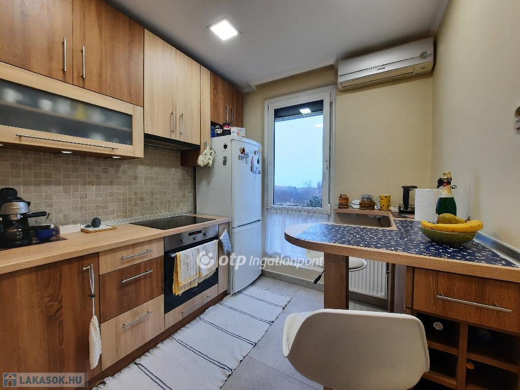Balaton déli parton, Siófokon 59 m2-es, két és fél szobás lakás eladó. Az ingatlan a Foki-hegyen egy társasház 4. emeletén helyezkedik el. Az épület a panelprogramban felújításra került. 2020-ban a lakást belülről is teljes körűen felújították. A felújítás kiterjedt az összes villany- és vízvezetékre, nyílászárókra, burkolatokra, teljesen megújultak a vizesblokk, álmennyezetbe süllyesztett energia takarékos világítás került kialakításra, a külső falak belülről is szigetelve lettek, ezáltal a fűtési költség alacsony. A lakásban 3 klímaberendezés található. A déli tájolású nappalihoz erkély kapcsolódik, az ellenkező oldalra néző szobákból balatoni panoráma látható. Az ingatlan egyedi kialakítású beépített bútorzattal és gépekkel együtt kerül eladásra. Az épület földszintjén tároló áll rendelkezésre, melyet 4 lakás használ közösen. Parkolni a társasház előtti közterületen ingyenesen lehet, akár több autóval is. A közelben játszótér, buszmegálló, vásárlási lehetőség, posta, gyógyszertár, orvosi rendelők, óvoda és középiskola található. Balaton-part gyalog 1300 méter, városközpont 1500 méter, M7 autópálya csatlakozás 1400 méter távolságban van. Kiváló választás állandó otthonnak, vagy nyaralásra, kiadásra is. Hitelfelvételben szakértő kollégánk ingyenes segítséget nyújt. Otthon Start Hitelprogram Bővebb információért keressen telefonon!