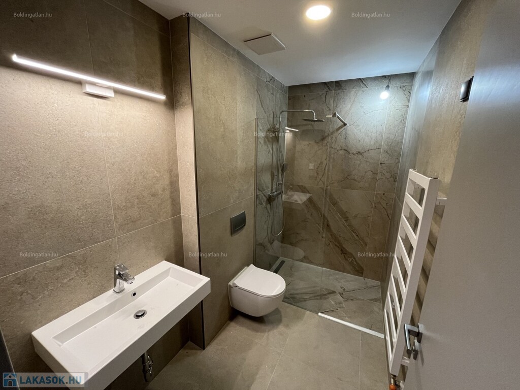 Siófokon a Fő térnél, a Kálmán Imre sétányon, új építésű, korszerű társasház 1. emeletén található 46 m2-es modern lakás, 5,17 m2-es erkéllyel együtt eladó. A minőségi anyagokból, igényes kivitelben épült ingatlanban egy 26,41 m2-es konyha-étkező-nappali, 5,17 m2-es erkély, előtér, 1 szoba, fürdőszoba- wc helyiségek kerültek kialakításra. Az épület fűtése korszerű, DAIKIN levegő/víz hőszivattyúval megoldott és légkondicionáló is felszerelésre került. A lakás könnyen megközelíthető és parkolási lehetőség is megoldott a közelben. Az ingatlan ideális lehetőség akár befektetésnek is a lokációja és nívója végett.