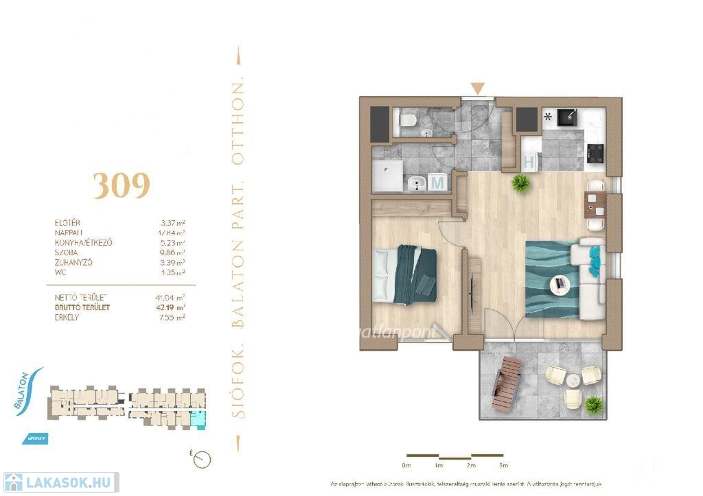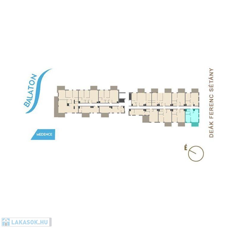 Siófok a déli part központja, 1 órányi autótávolságra Budapesttől. A parti sétányon elhelyezkedő lakás kiváló lokációval rendelkezik a közelben számtalan kikapcsolódási lehetősséggel még is távol a város zajától. 1 perc séta távolságra az Ezüstpart Yacht kikötő. A 69 lakásos projektben minden lakáshoz erkély tartozik, a fölszinten pedig saját kertek.
