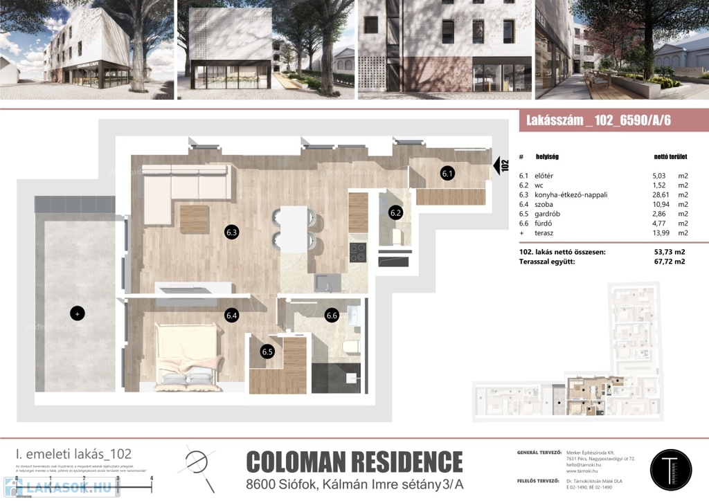 Az épület részletes műszaki tartalma az alábbi linkre kattintva érhető el: https://coloman.hu/muszakitartalom/