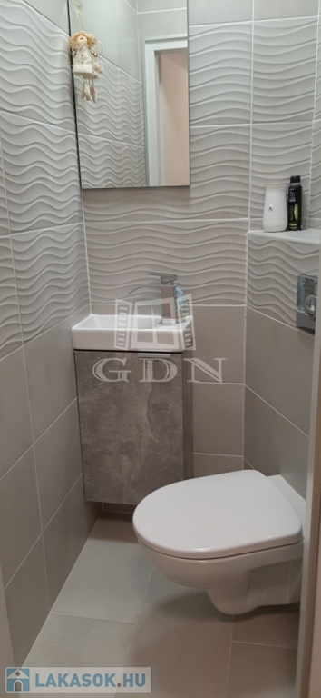 Modern burkolatok, kellemes színvilág és ízléses kiegészítők találhatók a lakásban.