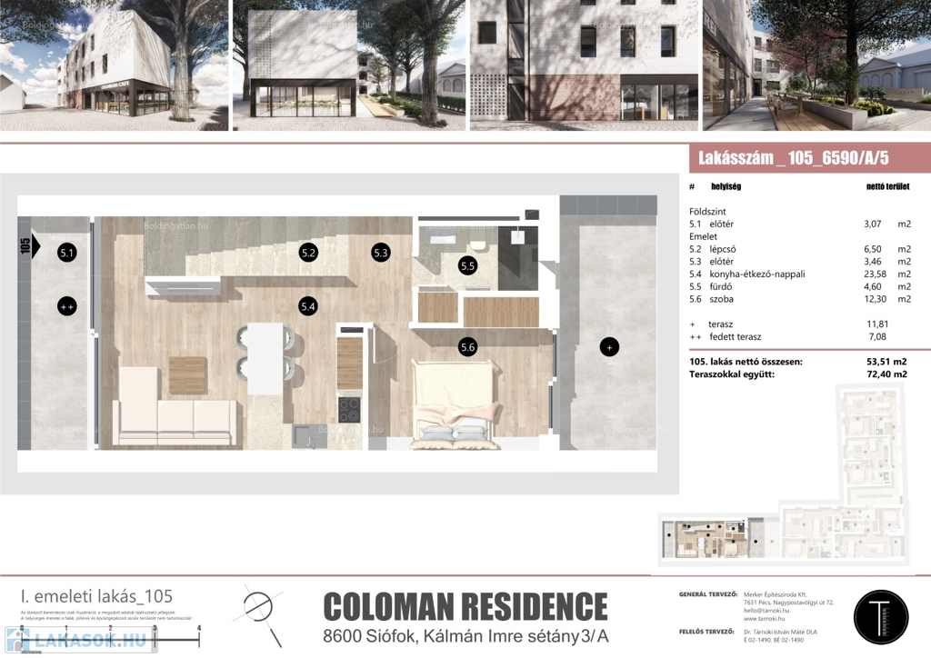 Az épület részletes műszaki tartalma az alábbi linkre kattintva érhető el: https://coloman.hu/muszakitartalom/