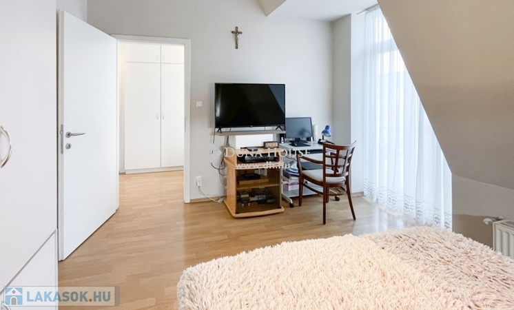 ELADÓ LAKÁS SOLYMÁRON, központi helyen, kiváló közlekedéssel és szolgáltatásokkal.Solymár frekventált részén, közvetlen közel a tömegközlekedési lehetőségekhez és számos szolgáltatáshoz, eladó egy 80 m²-es, tágas és világos lakás, amely minden igényt kielégít.Az ingatlan két kényelmes méretű szobával, egy hangulatos nappalival, étkezővel, jól felszerelt konyhával és egy praktikus gardróbszobával rendelkezik. A fürdőszoba és a WC külön helyiségben található, ami növeli a lakás komfortját.Különlegességek: Két erkély, ahol a reggeli kávét nyugodt környezetben fogyaszthatja el, valamint egy kis terasz. A lakás rendkívül világos, köszönhetően a jól átgondolt elosztásnak és a nagy ablakfelületeknek, amelyek kellemes atmoszférát teremtenek.Közlekedés: Közelben található a vasútállomás, valamint a távolsági és helyi buszjáratok megállói, amelyek gyors és kényelmes összeköttetést biztosítanak Budapest irányába. A II. kerület mindössze néhány perc autóval, ahonnan szintén számos közlekedési lehetőséggel érhető el Budapest több kerülete is.Szolgáltatások és környék:A lakás környezetében számos bevásárlási lehetőség elérhető, köztük Auchan, Spar, Aldi, Lidl, így minden napi szükséglet könnyedén beszerezhető. A közelben található játszótér, óvoda és iskola is, ami ideális választás lehet családosok számára.Parkolás:Az utcán.Energetikai besorolás: A+Ez az ingatlan ideális választás mindazok számára, akik nyugodt, zöldövezeti környezetben szeretnének élni, ugyanakkor fontos számukra a jó közlekedési lehetőség.A társasház rendezett anyagi helyzetű, a lakóközösség kiváló.További információkért keressen bizalommal a hét bármely napján!