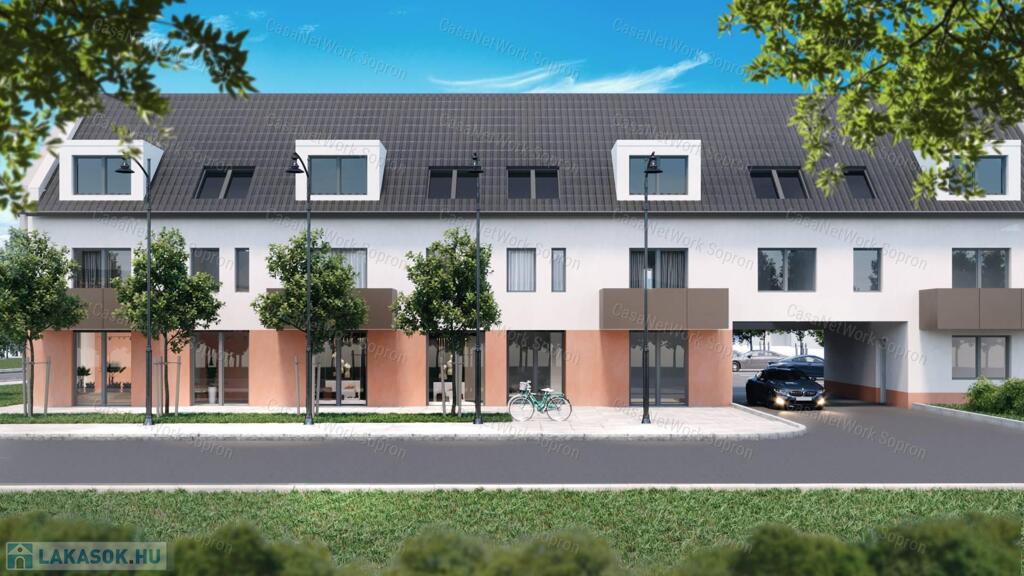 A Casanetwork ingatlanirodák kínálatában új építésú projekt!!!Sopron csendes, családi házas övezetében kínálunk egy 29 lakásból álló új építésű reprezentatív lakóházban, egy 54 m2 méretű, második emeleti lakást. A lakás déli és nyugati tájolású ablakokkal is rendelkezik.