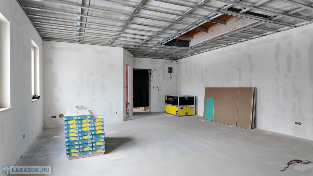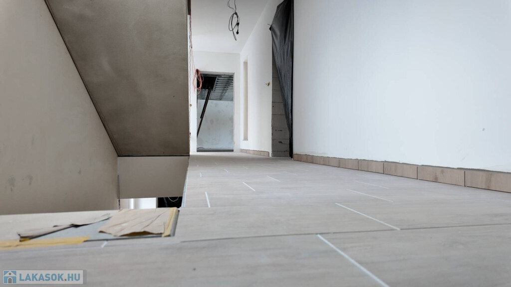 A minőségi burkolatok és beltéri ajtók beépítése jelenleg folyamatban van, a konyha, belső lépcső stb. még igény szerint alakítható!