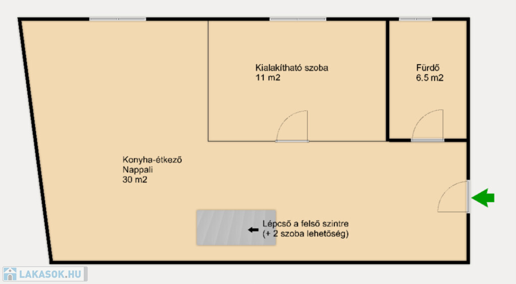A BELSŐ 2 SZINTES lakás alsó szintje (47 m2) egy nappali + 1 hálószobával és zuhanyzós fürdőszobával készül, valamint tartozik hozzá egy tetőtéri rész, melyhez a kivitelező lépcsőt épít, itt kialakítható további 2 szoba, vagy 1 nagyobb közösségi helyiség.