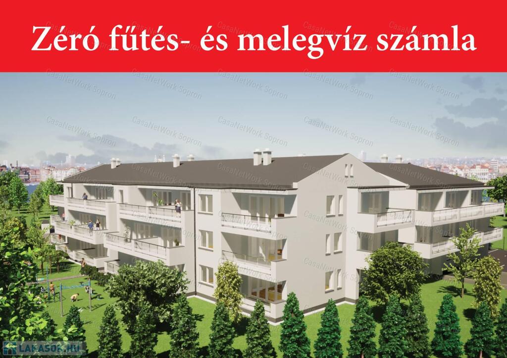 D23Hőszivattyúval és napelemmel működő fűtés- és melegvíz ellátás, mely nem jár költséggel!!!Sopron kertvárosi övezetében, most induló új projekt keretében eladó egy 65,8 m2 méretű, nagy erkélyes, második emeleti, nappali+két szobás lakás.