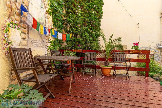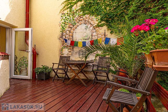 Ez a bájos lakás megőrzi a régi idők eleganciáját és modern kényelmi funkciókat is kínál. Az ingatlan 69 négyzetméteres lakótere magában foglal egy konyhát étkezővel, egy fürdőszobát WC-vel, egy külön WC-t, egy gardróbot, kamrát, valamint egy nappalit, melynek galériájában hálószoba lett kialakítva, továbbá egy hálószobát szintén galériával. A lakrészből közvetlenül egy privát, hangulatos kis udvarra léphet, mely saját terasszal rendelkezik – tökéletes helyszín a reggeli kávézásra, olvasásra vagy esti borozgatásra.