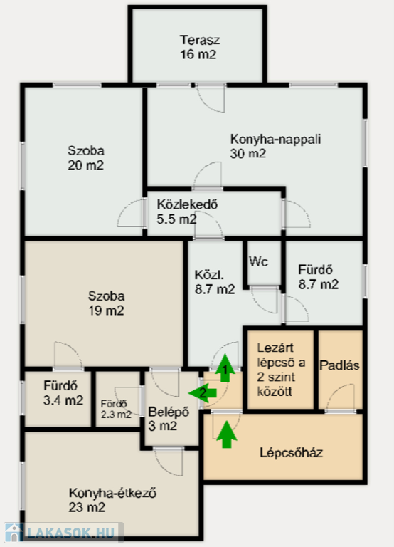 Két külön bejáratú lakásként funkcionál (igény szerint egybenyitható)