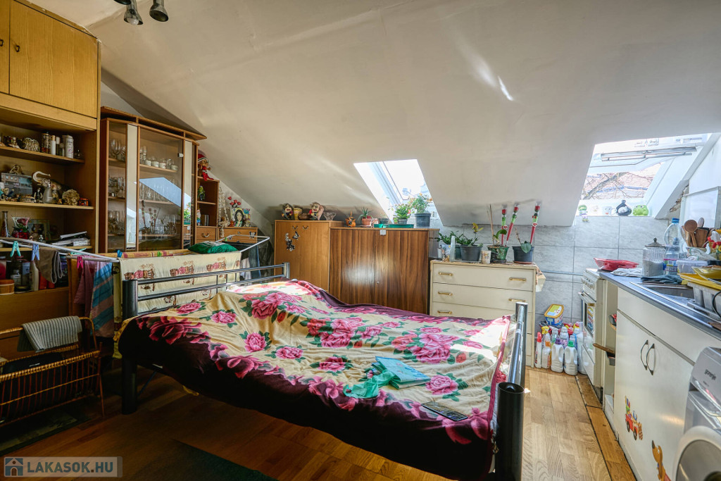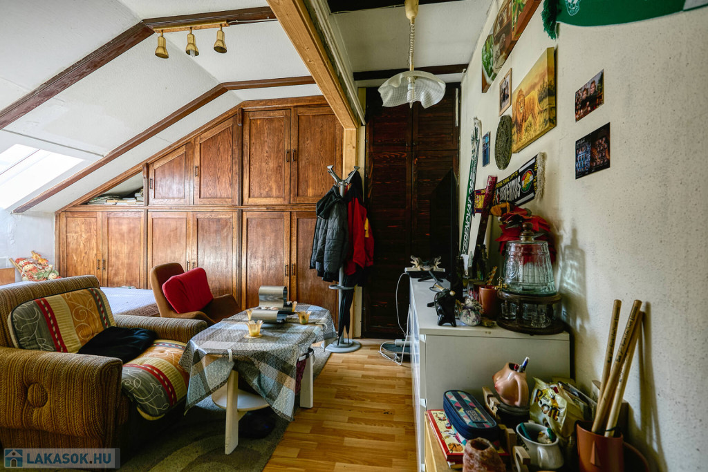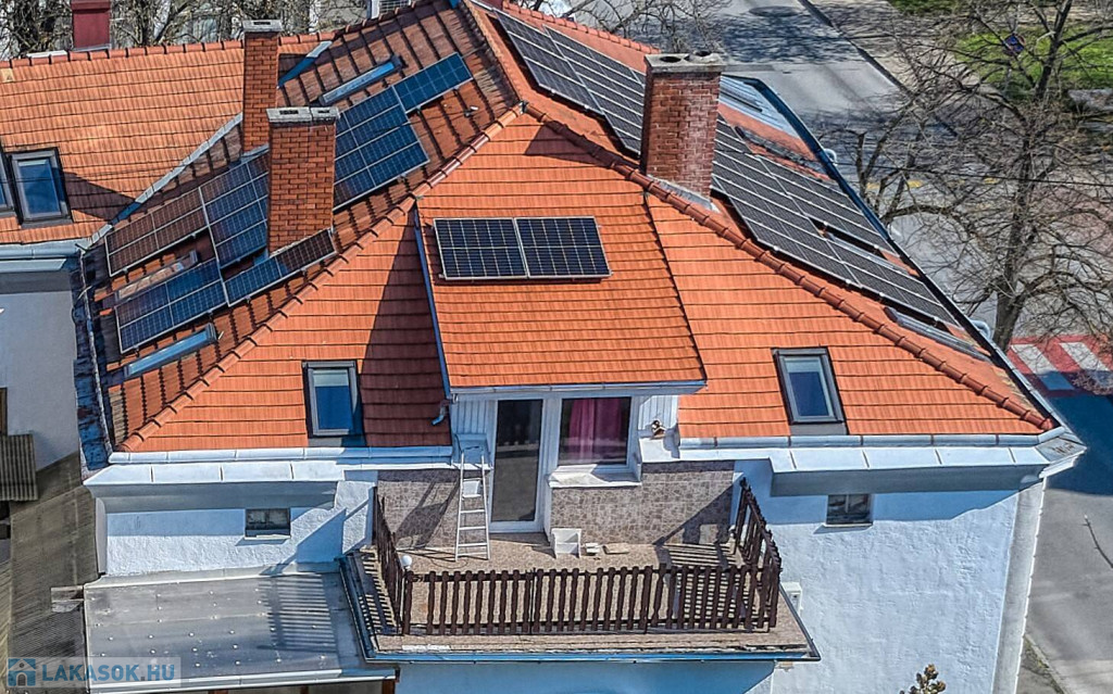 Bruttó 130 m²-es, tetőtéri lakás egy 4 lakásos, rendezett társasház első emeletén, 16 m²-es, déli tájolású terasszal, ahonnan csodás kilátás nyílik a Lővérekre.