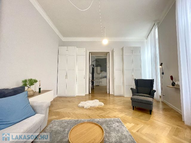 A neobarokk stílusú műemlék épület első emeletén található lakás, 70 m2 alapterületű, amely tágas nappali, konyha-étkező, egy hálószoba, fürdőszoba, külön mellékhelyiség és háztartási helyiség kialakítású, egy minden igényt kielégítő és magas minőségben felújított ingatlan.