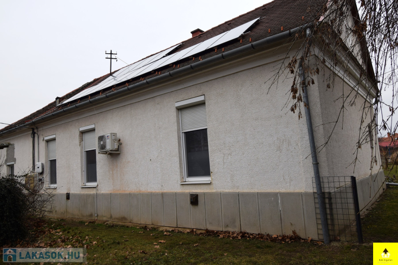 Sopronhorpácson 89 m2-es, 4 szobás ingatlan eladó! Az ingatlan kiváló szerkezeti állapotban van, folyamatosan, gondosan karbantartott. A tető 10 éve lett felújítva új héjazatot kapott, pár évvel ezelőtt pedig napelem rendszer került rá, így a villanyszámla 0 Ft. Téglából épült a falak szárazak. A felújítás során cserélve lettek a nyílászárók, az elektromos, a víz és a szennyvízvezetékek is, valamint megújult a fürdőszoba. Melegvízellátását villanyboyler, fűtését gázkonvektorok biztosítják, de van fűtésre optimalizált klíma is a, mellyel a szaldós elszámolású napelem rendszernek köszönhetően ingyen fűthetünk. A lakáshoz tartozik egy kizárólagos használatú telekrész egy tároló, amely és egy nagy méretű szintén tégla falazatú „fatároló” is amely egyéb más célra pl. műhelyként, raktárként is hasznosítható. Amennyiben a későbbiekben a társasház mindhárom tulajdonosa úgy dönt, akkor a telekrészek 1 db önálló építési telekként funkcionálhat, beépíthető, vagy eladható. A ház alatt van pince közös használatú pince, az udvaron pedig egy közös gyűrűs, ásott kút, ha valaki öntözni szeretné a kertjét. A lakás fenntartási költsége, rezsije rendkívül alacsony.