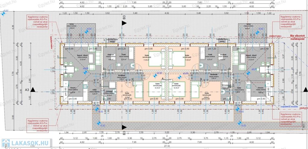 Az aszfaltozott utcában elhelyezkedő összközműves telek utcafronti részén felújításra kerül egy meglévő családi ház, és az ikerház e mögött fog elhelyezkedni. Az ingatlan társasházként fog funkcionálni, tehát az albetétek saját helyrajzi számmal, LAKÁSKÉNT fognak szerepelni az ingatlannyilvántartásban.