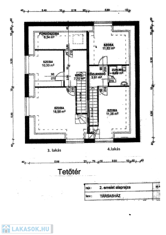 Tetőtérben: a 5. számú lakás 70 m2, 3 szobás 74 millió Ft