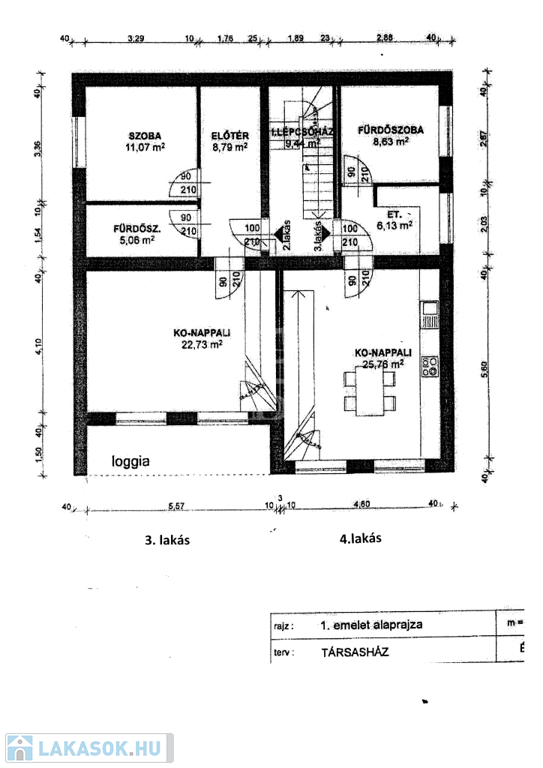 Emeleten a 3. számú lakás 53 m2 + 8 m2 loggia, 2 szobás 58 millió Ft
