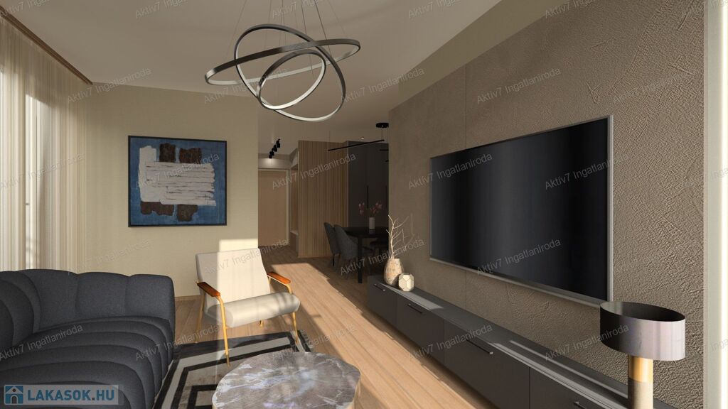 A szóban forgó lakás harmadik emeleti, 63,48 m2 területű, amerikai konyha nappali +2 hálószobás, a hozzá tartozó 7,64 és 6,23 m2 erkélyekkel (a fotók között található alaprajz szerint).