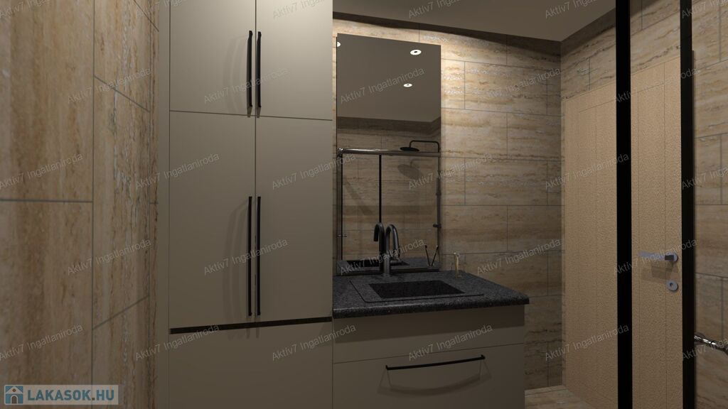 Teljesen készen van, burkolva, festve, elektromos redőnnyel, beltéri ajtókkal, szaniterekkel felszerelve kínáljuk. A vételár a konyhaszekrényt NEM tartalmazza.