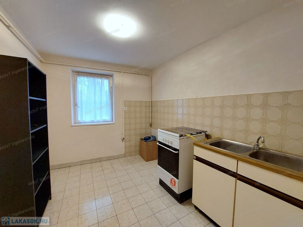- Egy nagy méretű szoba és egy tágas konyha: a konyha akár szobává alakítható, így amerikai konyhás nappali + egy külön szoba is kialakítható.