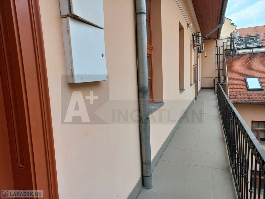 A lakás előtt végighúzódik a saját függőfolyosó, mely erkélyként is tökéletesen funkcionálhat.