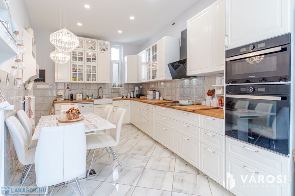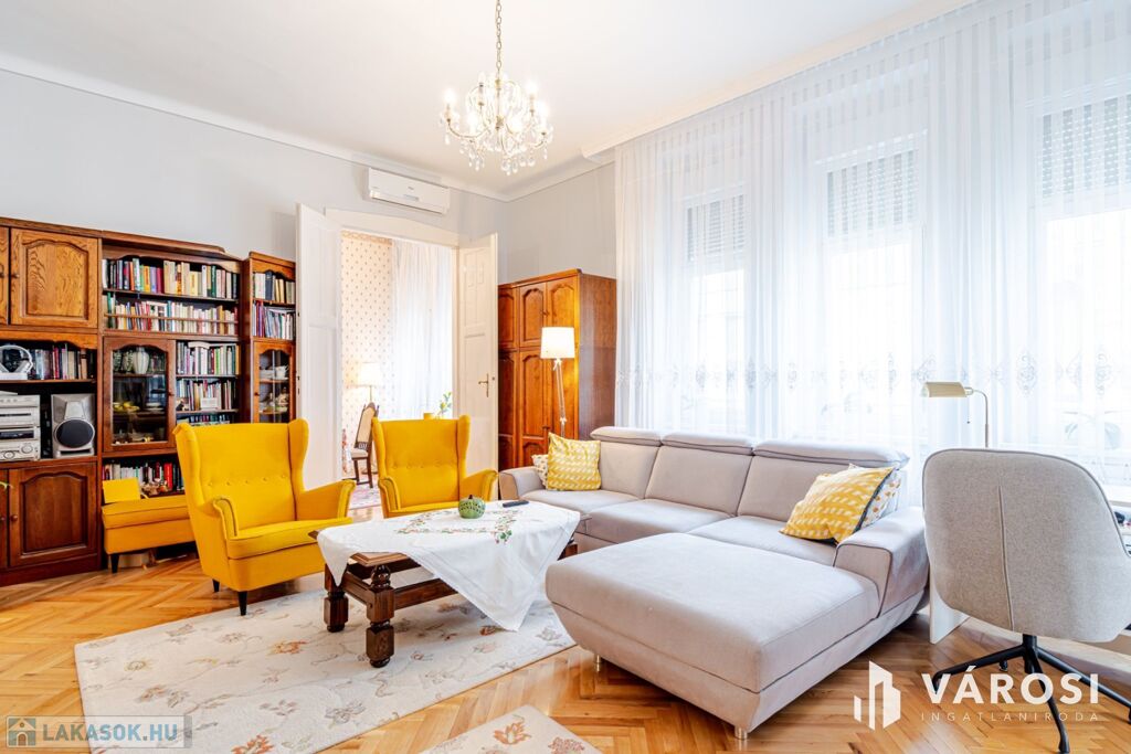 Eladó Szeged szívében, az Anna-kúttól mindössze egy percre egy harmadik emeleti 139 m²-es, klasszikus polgári lakás, amely teljes körű műszaki és esztétikai felújításon esett át. A lakás 4 tágas szobáját egy külön gardrób- vagy dolgozószoba egészíti ki, emellett konyha, kamra, fürdőszoba, mosdó és egy hangulatos loggiával is rendelkezik. A terek világosak, magas belmagasságúak és elegánsak, így az ingatlan egyszerre sugároz klasszikus értékeket és modern életérzést.