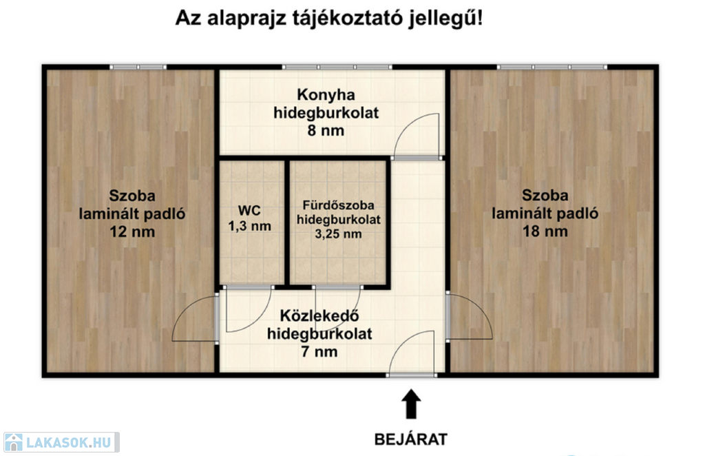 - Laminált padló a szobákban, a többi helyiség hidegburkolatos.
