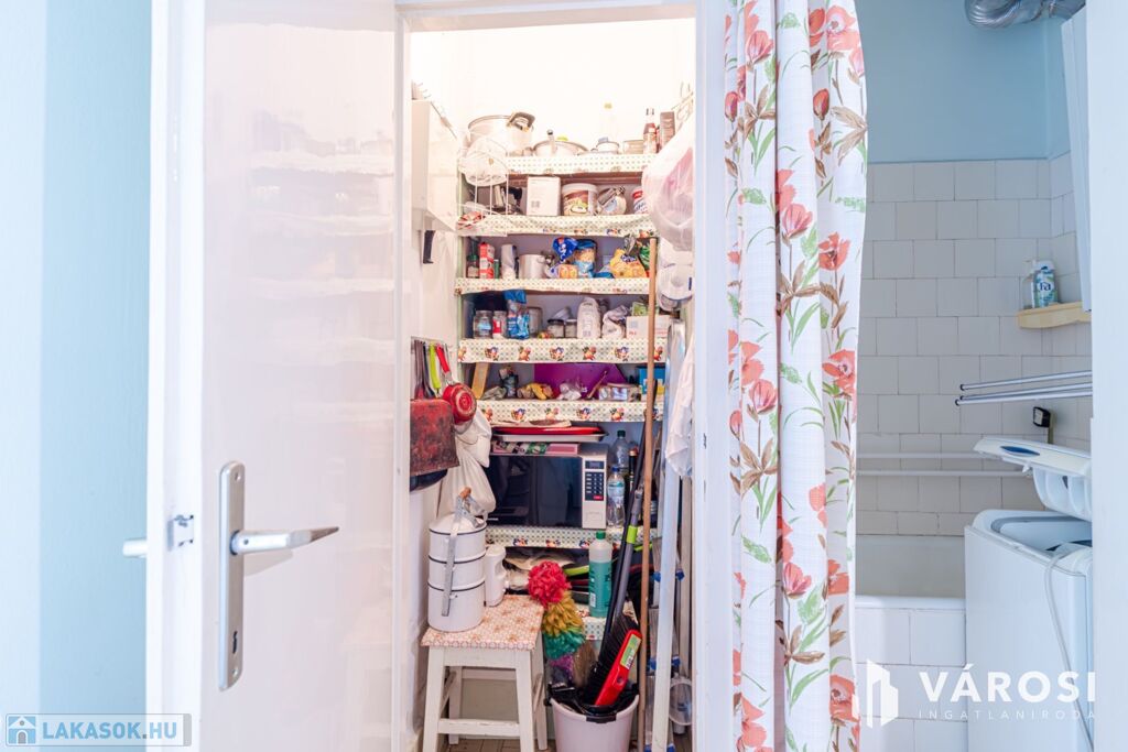 Fontos tudni: a konyha és a fürdő jelenleg egy légtérben található. Az átalakítás során a kamra bevonásával külön zuhanyzós fürdő kialakítható.