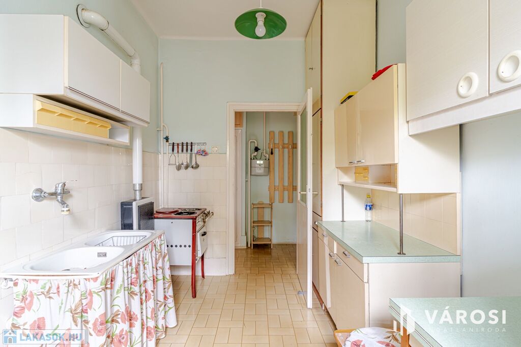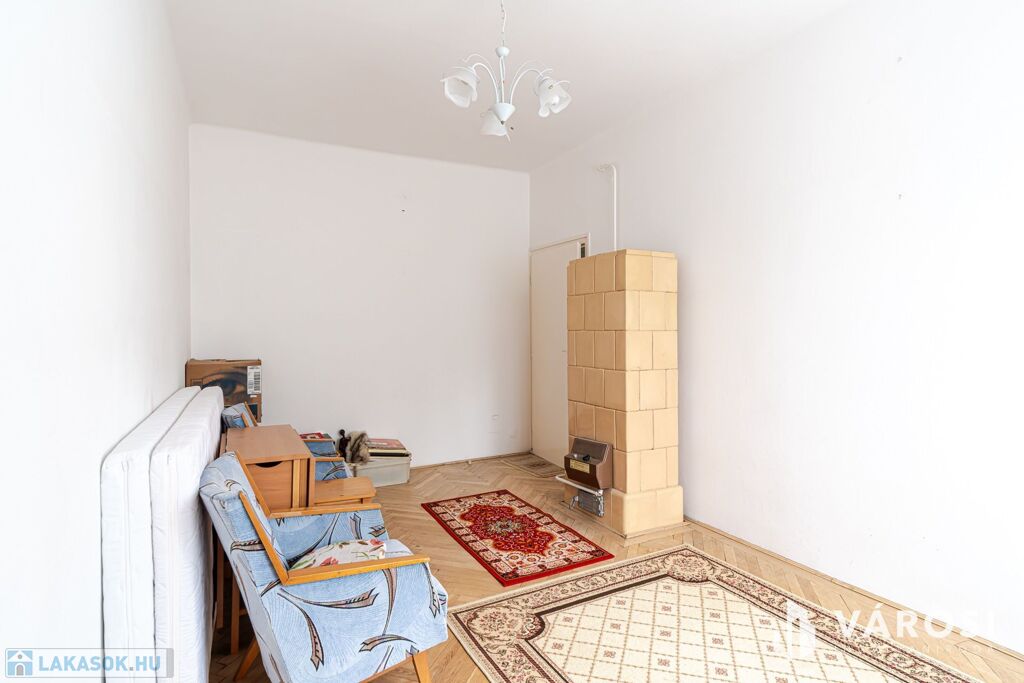 A lakás a 4. szinten helyezkedik el, zárószinti (nincs lift), így nincs felső szomszéd, a tető viszont felújított. Elosztása kedvező: két külön nyíló szoba, erkély, jól alakítható terek.