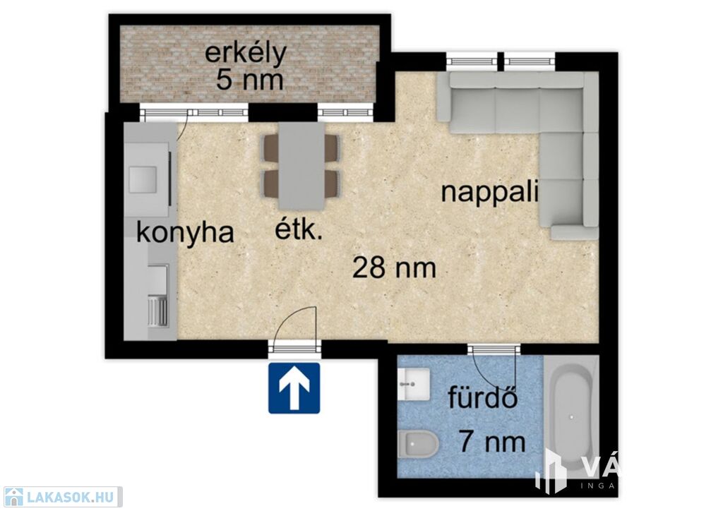 - Amerikai-konyhás nappali,fürdő, erkély.