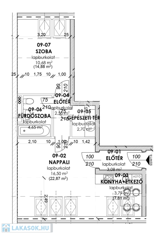 - nettó 44 m² (kb. 52 m² bruttó)