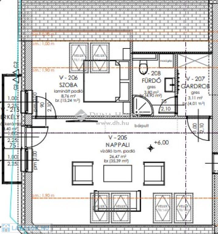MODERN, KULCSRAKÉSZ, ENERGIAHATÉKONY OTTHONOK!Szeged-Móraváros, Petőfi Sándor sugárút vonzáskörzetében 5 lakásos projekt épül.A modern, 3 szintes épület ( fsz., 1.em., 2.em. (tetőtér) ) lakásai változatos méretben készülnek, erkéllyel rendelkeznek. Várható kulcsrakész átadás: 2025.10. hóA 6. számú lakás az épület 2. emeletén (tetőtér) található, alapterülete 42,14/59,1 m2, melyben amerikai konyha + nappali, egy háló és fürdő került kialakításra.A környezettel való kapcsolatot a 3,11 m2-es erkély biztosítja.Össz terület: nettó 43,695 m2 (1/2 erkéllyel)Az ingatlan használati megosztással (saját mérőórák) eladó, a szomszédos lakásközös előtérből nyílik.Néhány műszaki jellemző:Homlokzat:-15 cm EPS zártcellás szigetelés az építész terveknek megfelelően.Falazat:- külső főfalak 30-as N+F téglából, - a lakáselválasztó - és a közösségi tereket elválasztó falak 30-as hanggátló, a belső válaszfalak 10 N+F téglából készülnekFűtés – hűtés:- a lakások fűtését központosított levegő-víz hőszivattyú rendszer fogja biztosítani, amely fűtési szezonban fűtő, fűtési szezonon kívül hűtő funkcióban üzemel.- minden lakásban padlófűtés kerül kiépítésre- minden lakóegységhez biztosított a hőmennyiség mérőKülső nyílászárók:- kívül antracit, belül fehér GEALAN vagy azzal egyenértékű 6 kamrás műanyag 3 rétegű üvegezéssel.Redőnyök:- vakolható redőnytokos redőnyök kerülnek kiépítésre.Klíma: - 1 db oldalfali Fan-Coil kiállás a bejárati ajtótól 4 méterre biztosított. Az ingatlan elhelyezkedése kiváló, hiszen a Belváros bármely pontja néhány perc alatt elérhető.Ajánlom azoknak, akik modern otthont szeretnének, de befektetési célra is remek lehetőség.MINDEN TOVÁBBI RÉSZLETTEL, VALAMINT MŰSZAKI ALAPRAJZZAL ÉS SZEMÉLYES MEGTEKINTÉSSEL KAPCSOLATBAN VÁROM HÍVÁSÁT!FORDULJON HOZZÁM BIZALOMMAL! MODERN, KULCSRAKÉSZ, ENERGIAHATÉKONY OTTHONOK!Szeged-Móraváros, Petőfi Sándor sugárút vonzáskörzetében 5 lakásos projekt épül.A modern, 3 szintes épület ( fsz., 1.em., 2.em. (tetőtér) ) lakásai változatos méretben készülnek, erkéllyel rendelkeznek. Várható kulcsrakész átadás: 2025.10. hó Nyugodt környezetEnergiahatékony megoldásokMinden további részlettel kapcsolatban várom hívását! Forduljon Hozzám bizalommal!