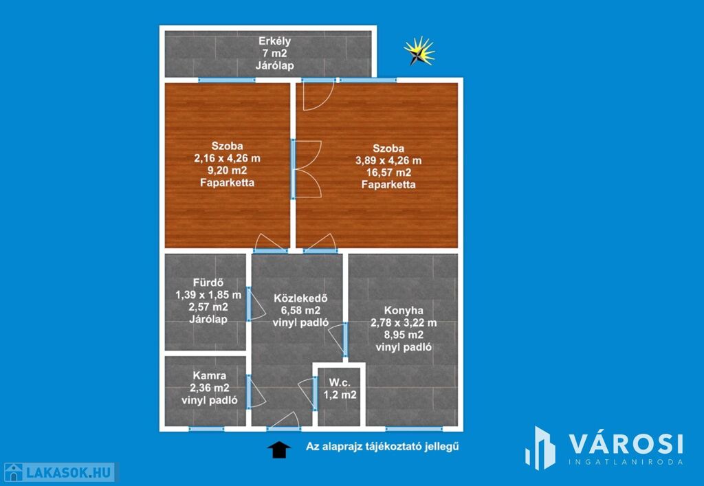 A lakás délkeleti tájolása, miatt rendkívül napfényes ingatlan.