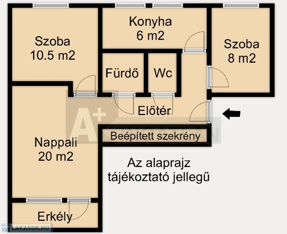 - 60 m2: Elosztását tekintve nappali plusz két fél szoba.