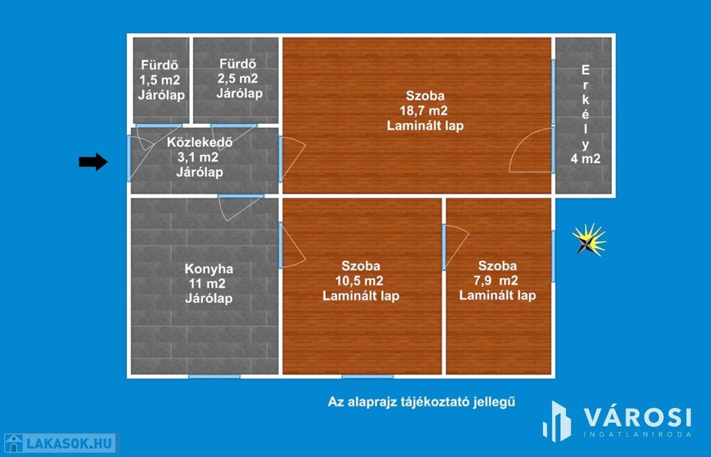 A lakás délnyugati tájolása, miatt rendkívül napfényes ingatlan.