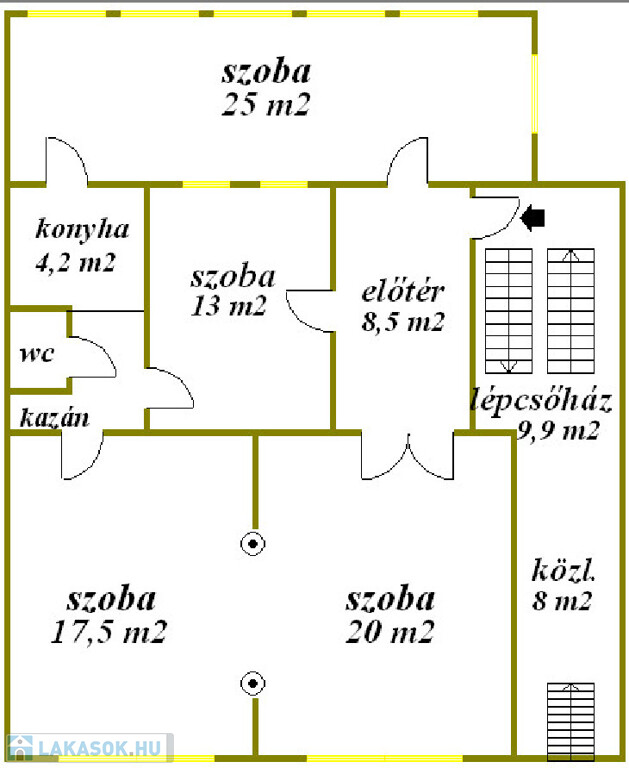 Szegeden a Brüsszeli körúton 100 m2-es, 3 szobás, 1. emeleti, kertkapcsolatos, cirkó fűtésű, klimatizált lakás, 335 m2-es telken (50 %-os használattal), két lakásos házban, tehermentesen, gyors birtokba adási lehetőséggel eladó. Fürdőszobát ki kell alakítani, mert jelenleg irodaként funkcionál. Az ingatlan nemcsak otthonként, de irodának, telephelynek is ideális.