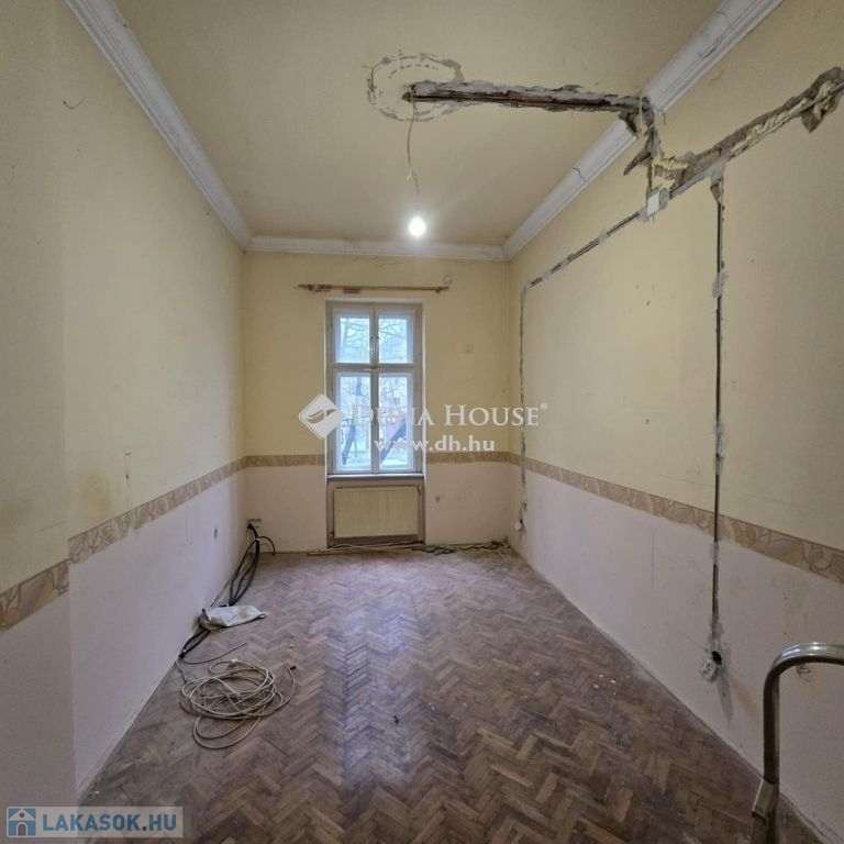 Az ingatlan teljes felújítását megkezdték, a villanyvezetékek, kapcsolók cseréje megtörtént, a további szakipari munkákra előkészítve.