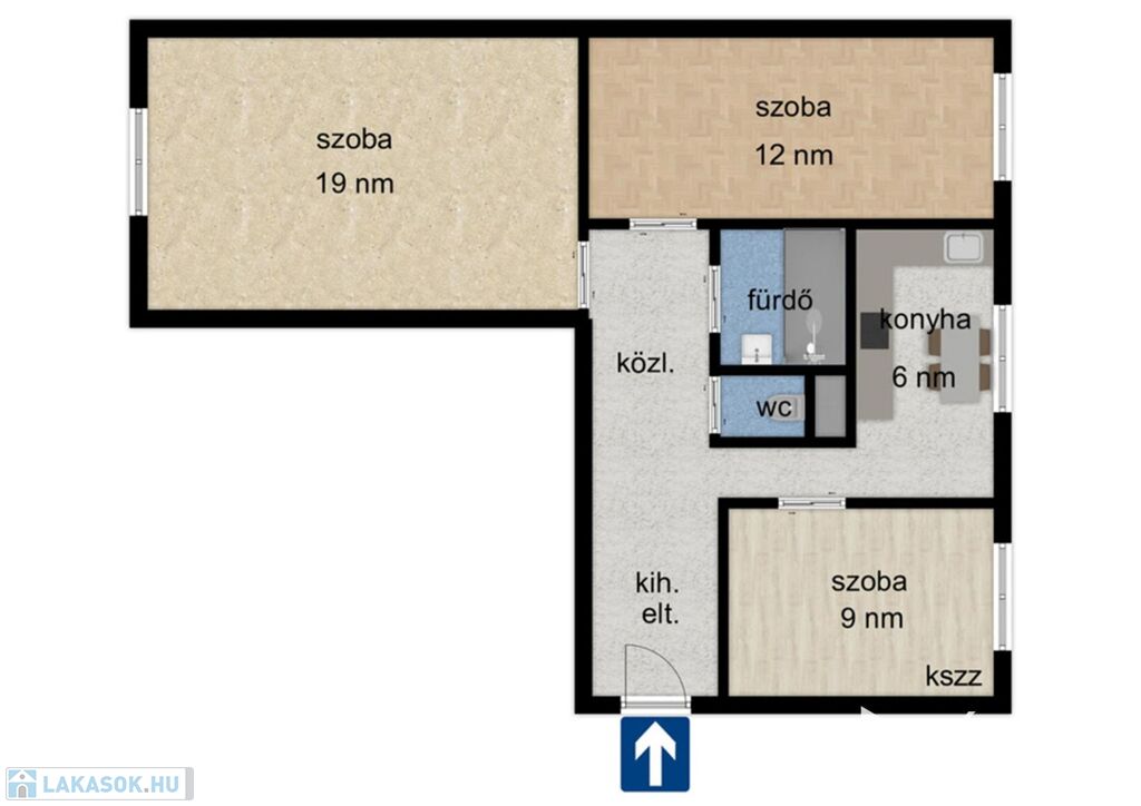- 3 szoba, konyha, fürdő, WC, közlekedő, kihelyezett előtér.