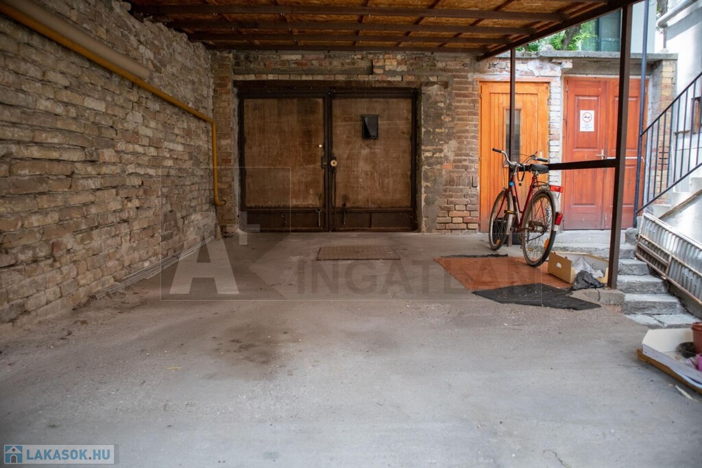 A lakáshoz tartozik a belső zárt udvaron elhelyezkedő nagyméretű fedett kocsitároló.