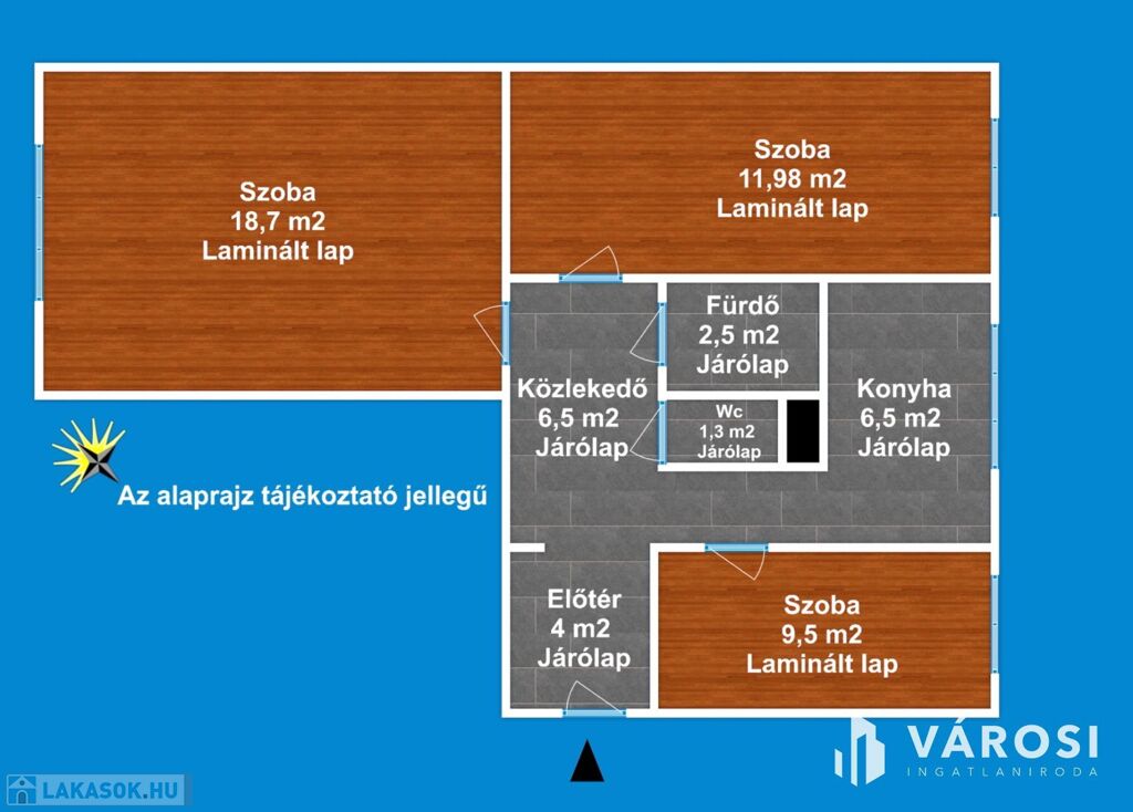 A lakás 1 db nappalival, 2 db hálószobával, 1 db fürdőszobával, külön Wc-vel, közlekedővel, loggoával rendelkezik. Az ingatlan elhelyezkedésre, kialakítása miatt rendkívül sokrétű a felhasználása - akár lakás, vagy befektetési célra -, amely maximálisan kiemeli ezt az ingatlant az átlagos lakások sorából és egyedülálló választássá teszi azt.