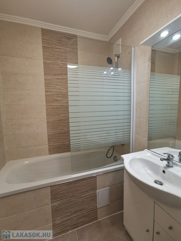 (A képek egy ugyanilyen minőségben, ugyanazokkal az anyagok felhasználásával felújított, más méretű, elrendezésű lakások képei (variációs lehetőségei), jelenleg még a burkolatok, színek, és minden egyéb, alaprajzokon felvázolt lehetőségek szerint módosítható megegyezés alapján, illetve zuhanyzó vagy kád is választható a fürdőszobába igény szerint.)