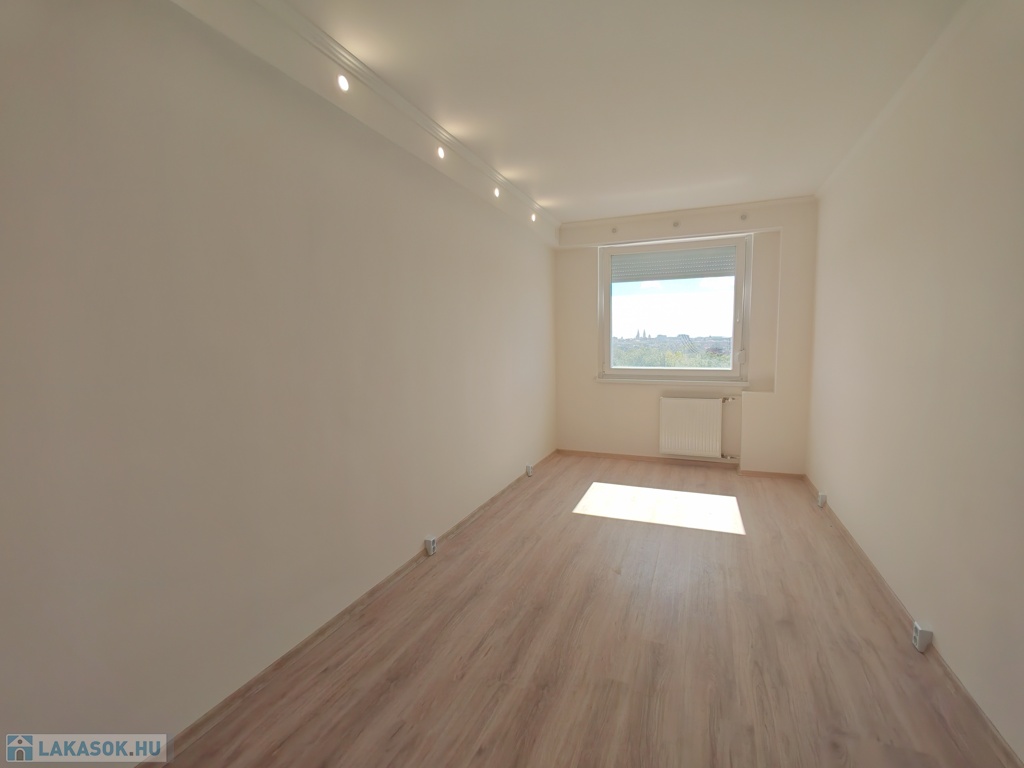 Szeged - Északi városrész, Cső utcában, panelprogramos, akadálymentesített épület 10.emeletén, 60nm-es, nappali + 2 külön bejáratú szobás, városra néző panorámával, erkélyes, teljes körűen felújított, külön fürdővel, wc-vel, beépített gardróbbal rendelkező, gépesített, alacsony rezsijű (CSOK-ra, Otthon Start programra alkalmas) egyedi mérésű távfűtéses panellakás, liftes, rendezett épületben tehermentesen eladó.