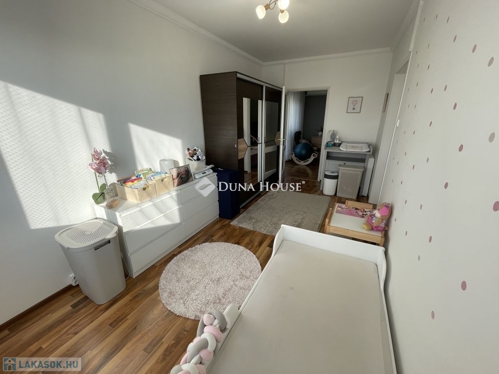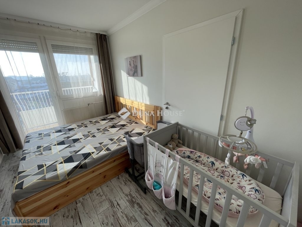A két hálószoba külön nyílik, így a privát szféra minden családtag számára biztosított, az egyik szobából közvetlen erkélykapcsolat is adott.